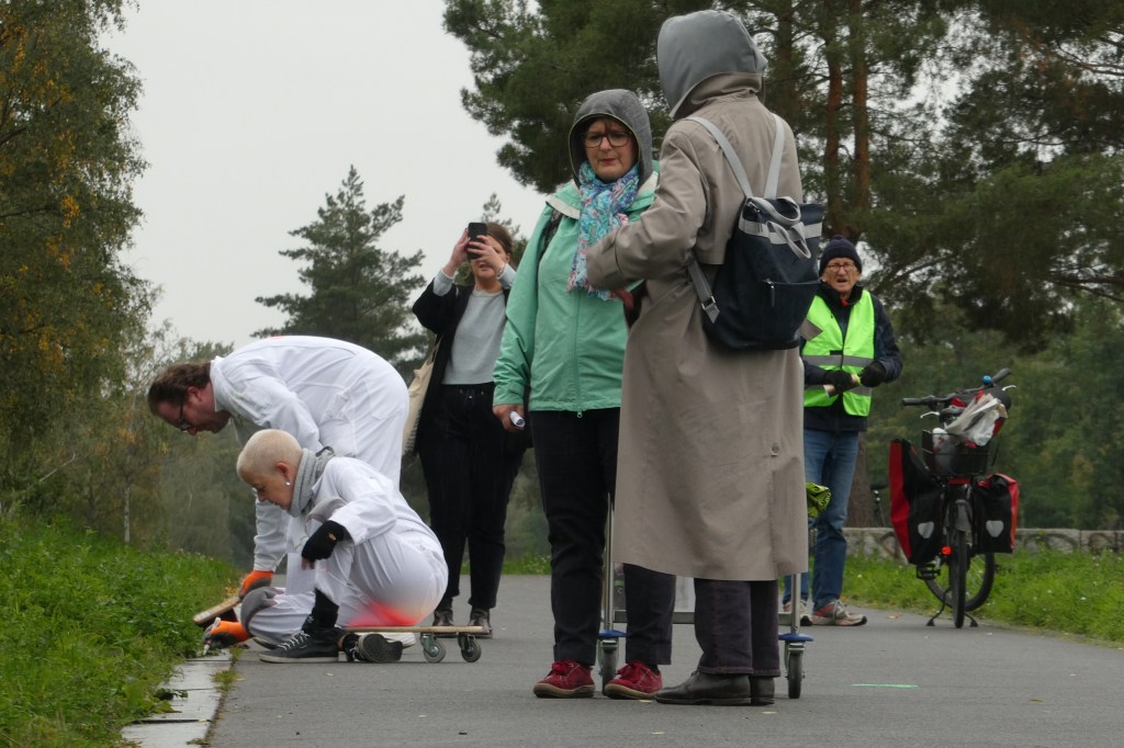 After about 2 hours of performance, we decided to end ÜBER SCHREITEN, ÜBER SCHREIBEN earlier due to the approaching weather front. Nevertheless, we are pleased with the successful initiative to move into Hans Baluschek Park in the spirit of its namesake.